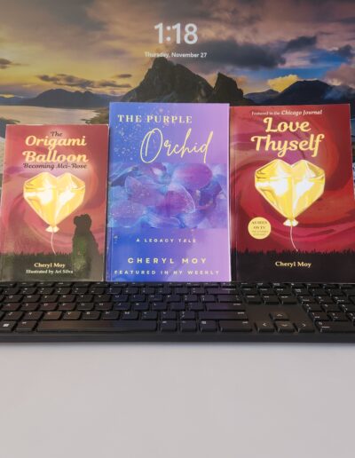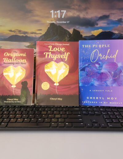 The Origami Balloon: Becoming Mei-Rose is Cheryl Moy’s debut novel. It is the story of how a shy, quiet little girl learns that she is enough just as she is. It follows Mei’s journey as she discovers how to embrace both aspects of her heritage, and in doing so, offers hope that one day she will be able to learn how to love herself.